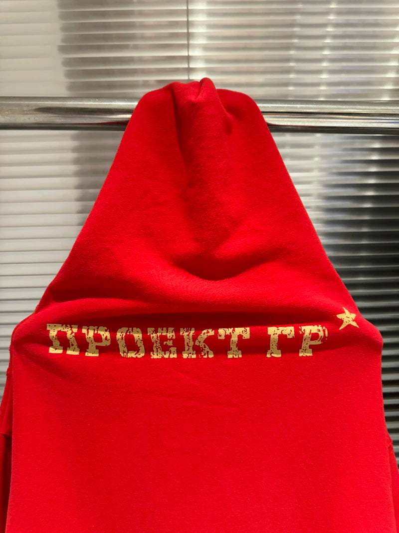 Double Cracked Eagle Print Project G/R Zipper Hoodie Jacket Glove Band Play Clothes Men Women Red Black Loose Caual Pullovers
