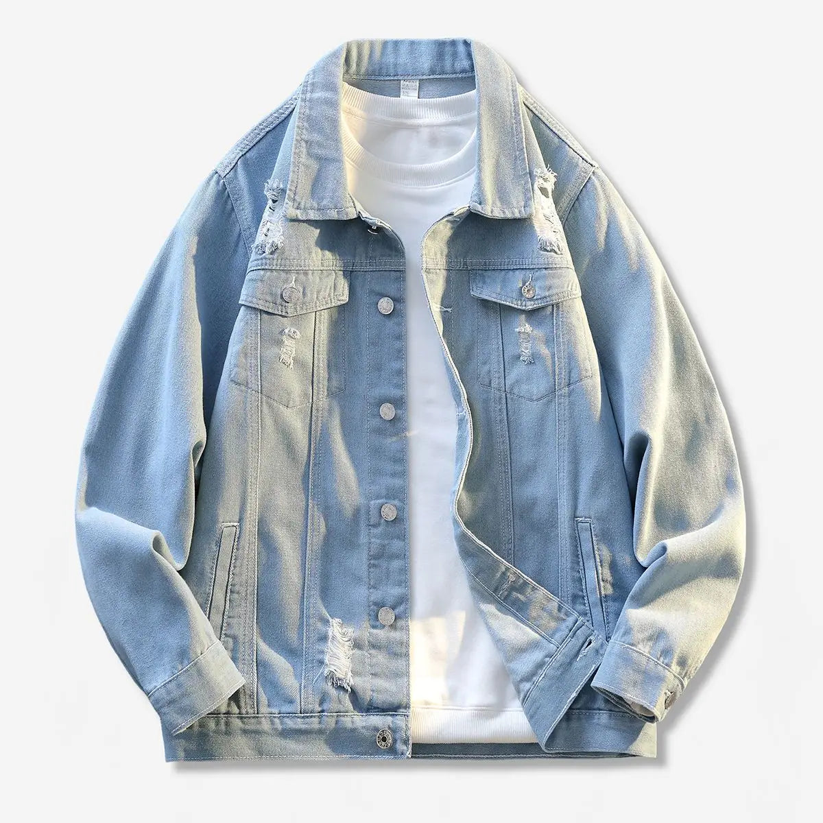 2025 Autumn Ripped Hole Vintage Men's Denim Jackets Washed Distressed Y2K Fashion Light Blue Black Turn-down Collar Jean Clothes