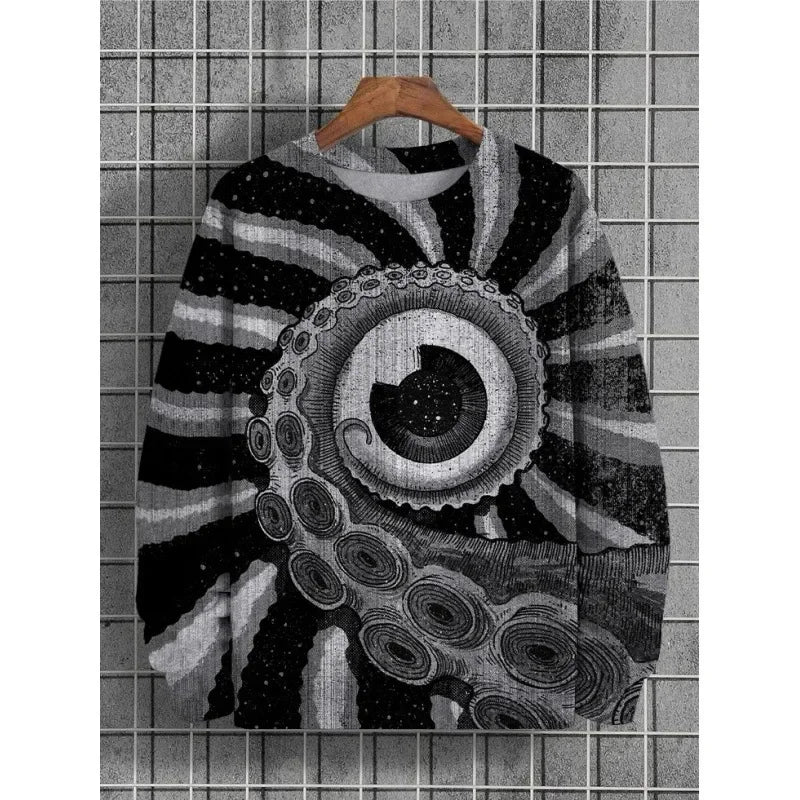 3D Abstract Graphic Hoodie Printed T-shirt Autumn Sweatshirt Men's Pullover Oversized Round Neck Sweatshirt Street Men's Clothin