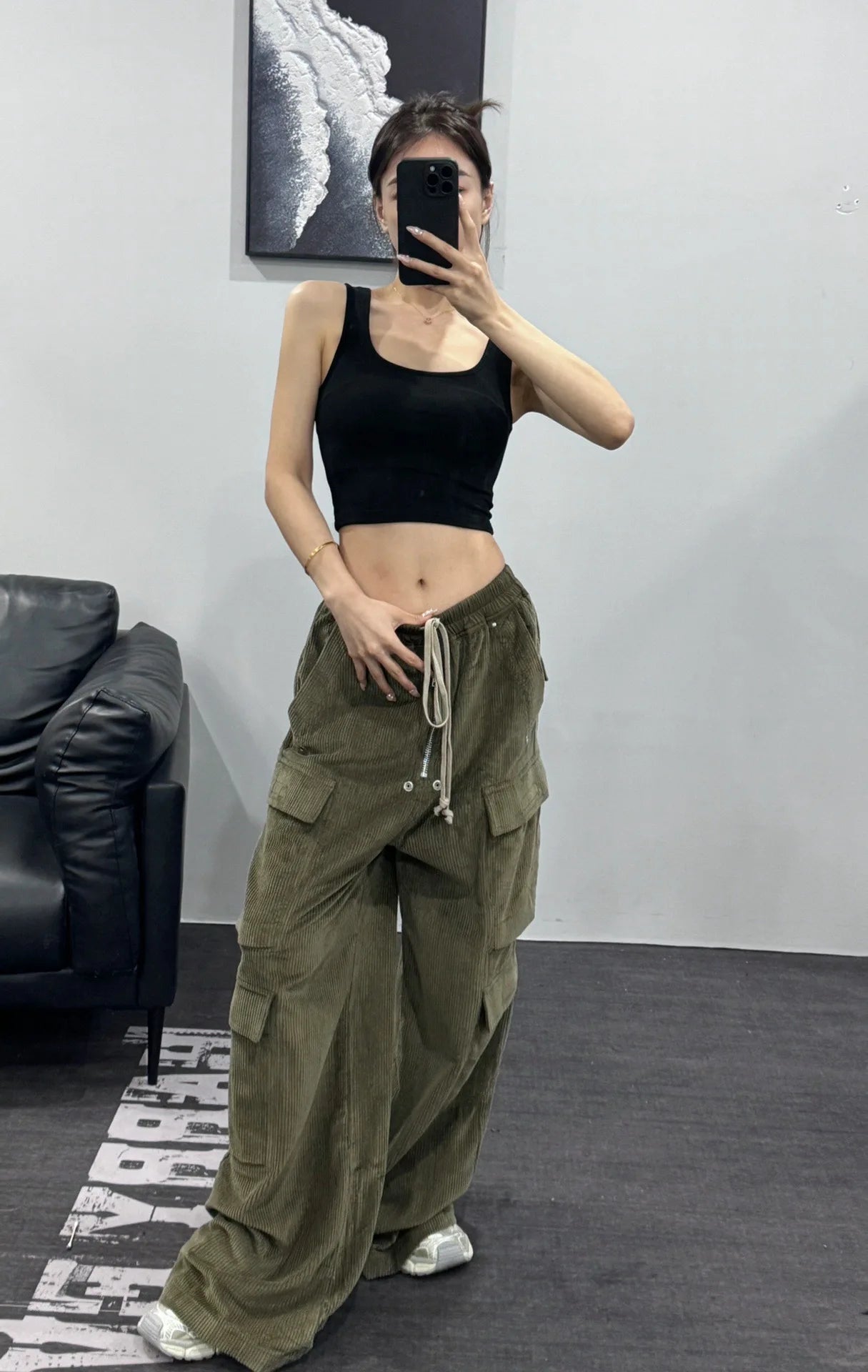 Owen Seak Men Cargo Pants Casual Loose Gothic Men's Sweatpants Autumn Solid Black Long Pants Size XL