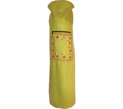 The bags are durable yet very lightweight and able to fit both the 1/8 inch and 1/4 inch yoga mats. This bag also features a small zippered pocket inside the bag and a larger one at the exterior. 29.5 inch x 7.5 inch, Cotton canvas fabric. Available in white and yellow.